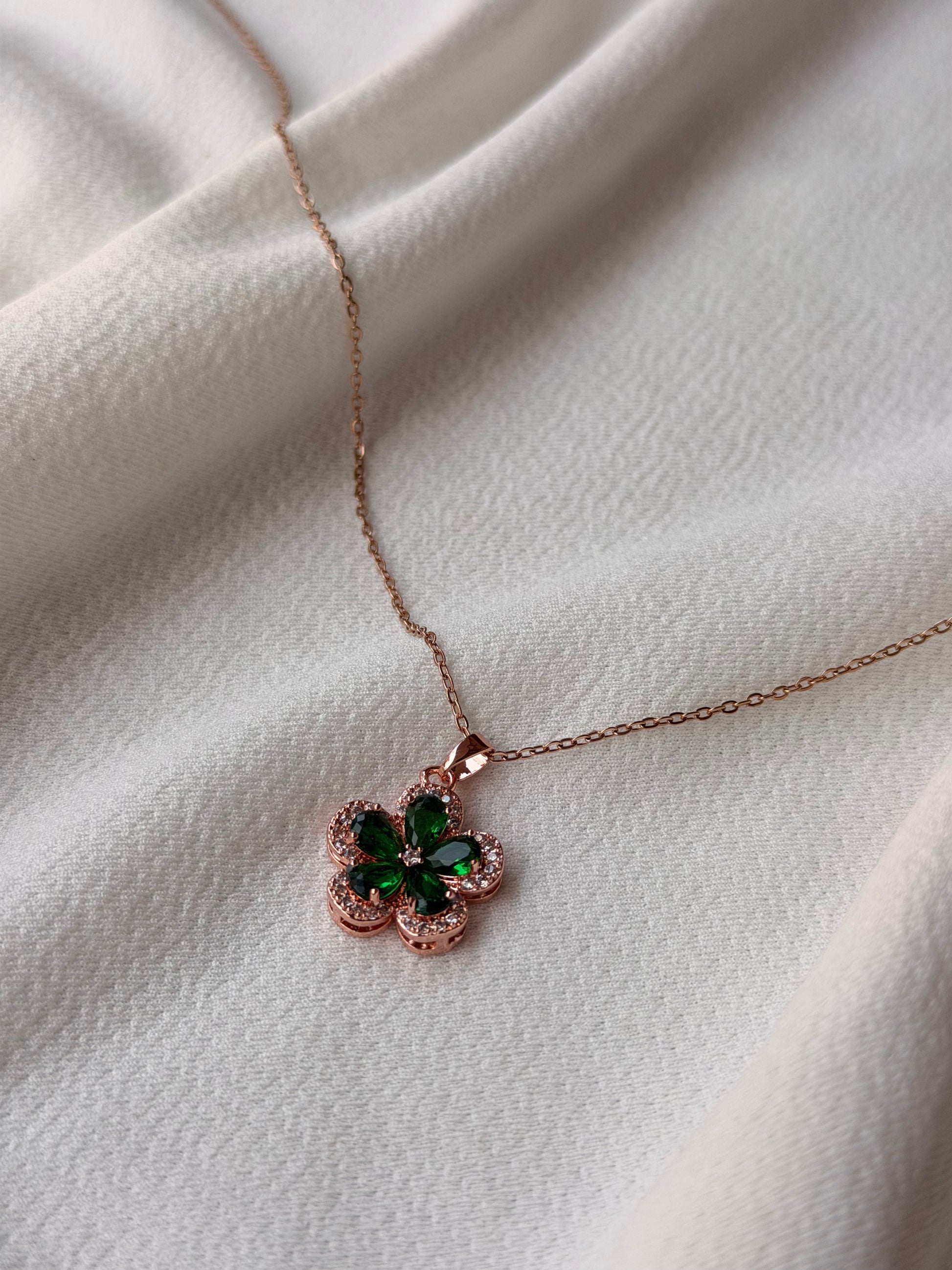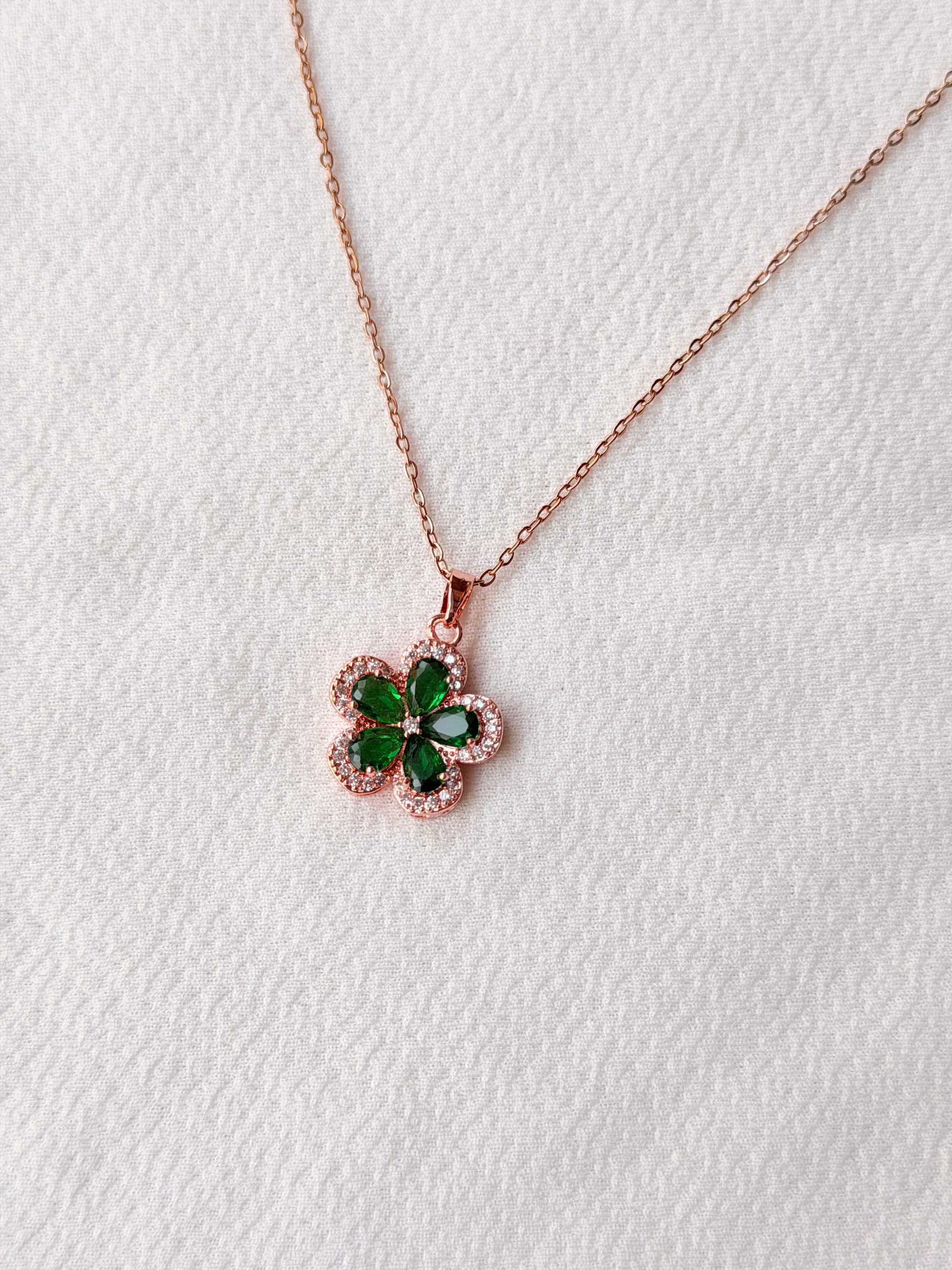 Green-white Crystal Flower Rosegold AntiTarnish Stainless Steel Chain Pendant