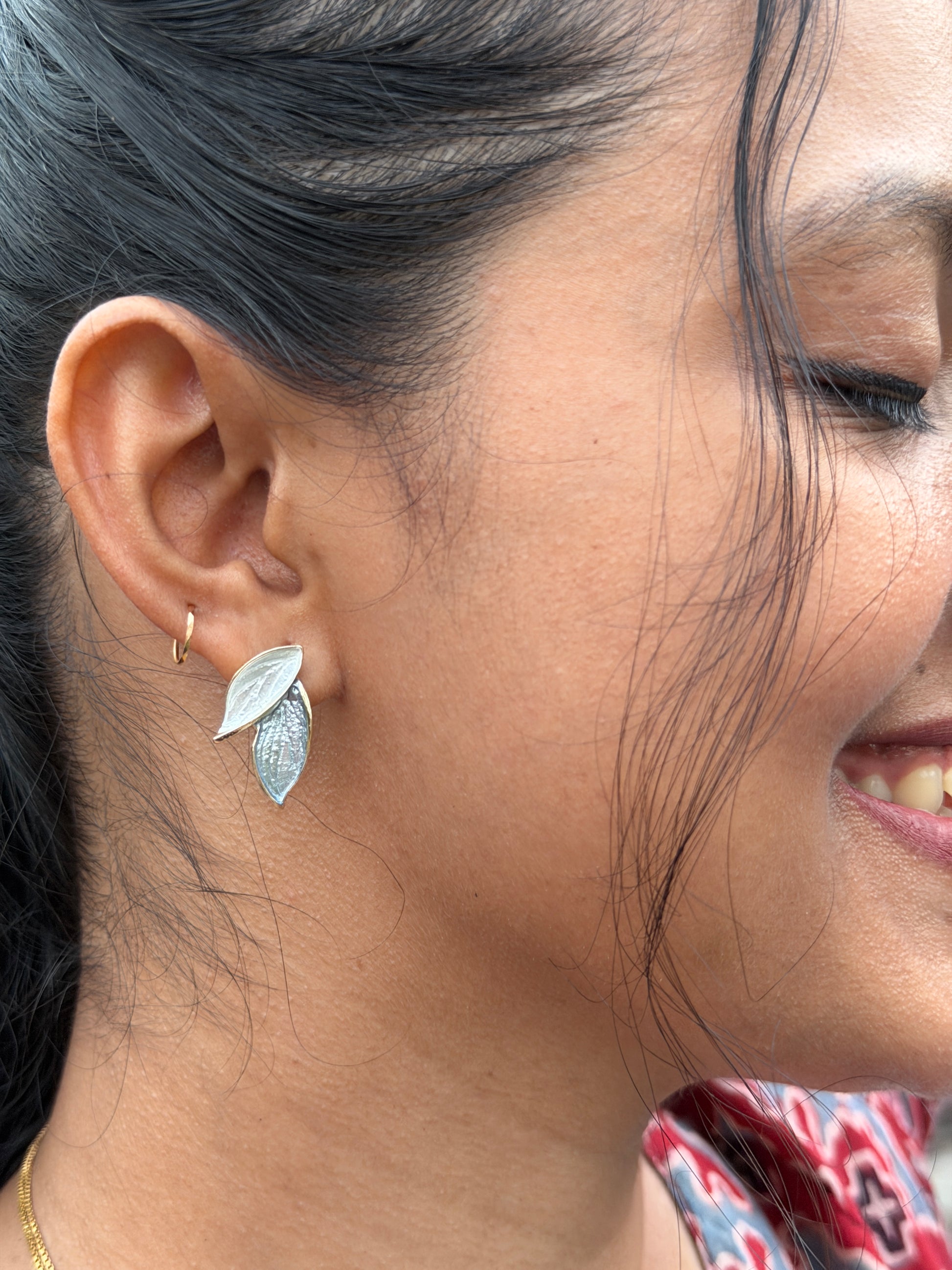 Delicate leaf-shaped drops suspended from refined ear wires, these earrings capture nature's elegant geometry. Crafted with meticulous attention to detail, each piece showcases the subtle interplay of light across polished surfaces. The lightweight design ensures comfortable all-day wear, while the timeless silhouette complements both contemporary and classic aesthetics. Perfect for those who appreciate understated botanical inspiration in their jewelry collection.