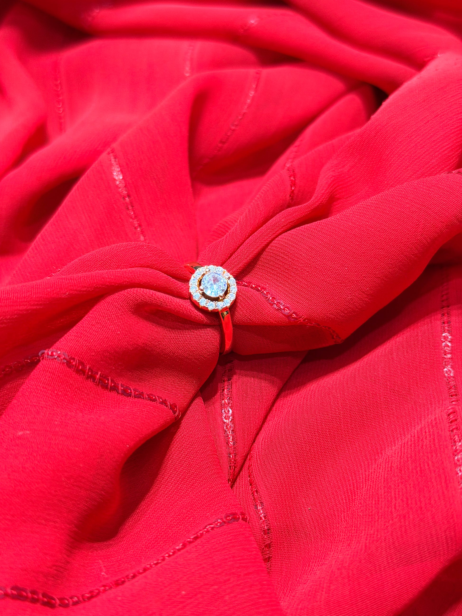 Round-cut Halo Setting Rose Gold-toned Adjustable Ring
